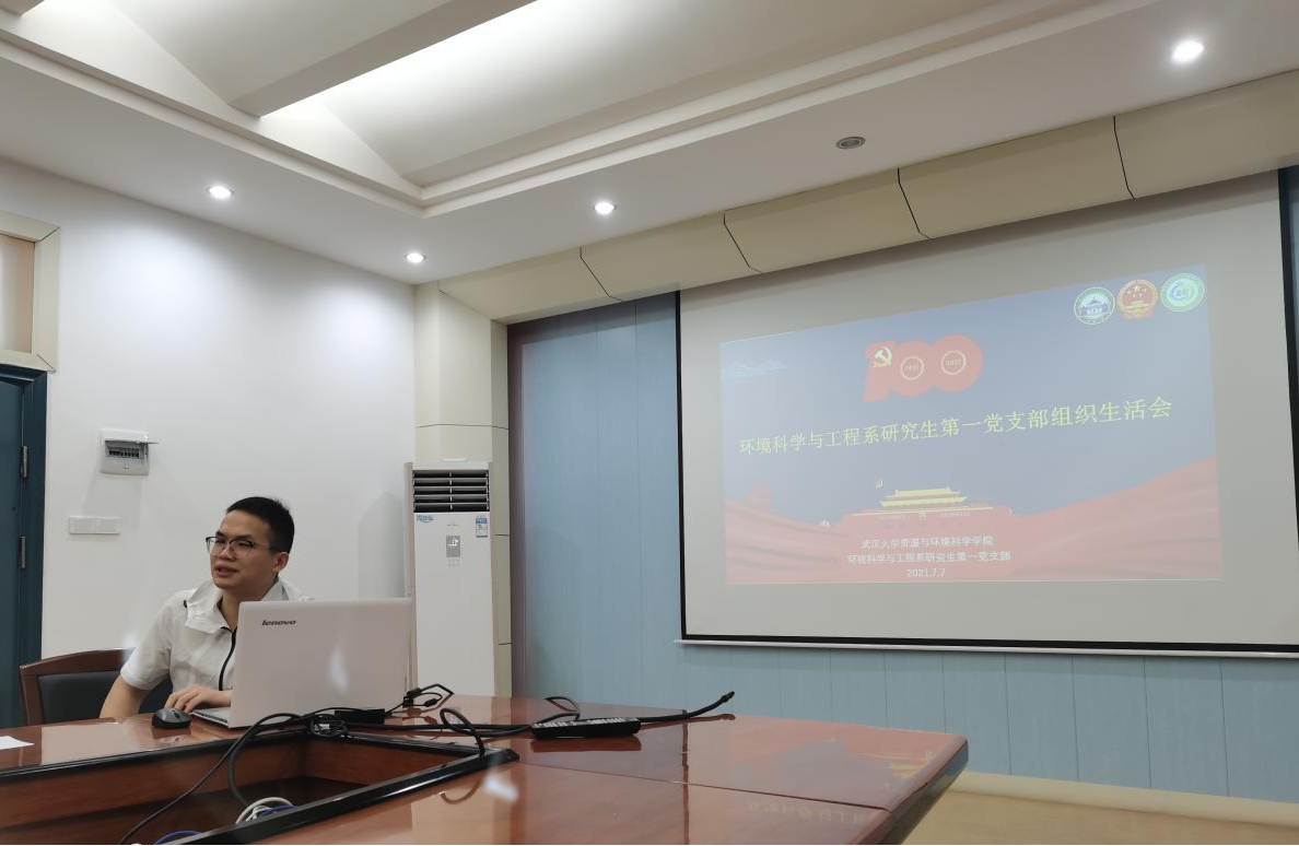 2021年7月7日上午9:30,环境科学与工程系研究生第一党支部在老王论坛 301会议室召开了“庆祝中国共产党成立100周年大会习近平总书记重要讲话精神”专题组织生活会。会议由党支部书记杨晨同志主持,支部全体党员同志、预备党员及发展对象、入党积极分子、入党申请人参与此次会议。
