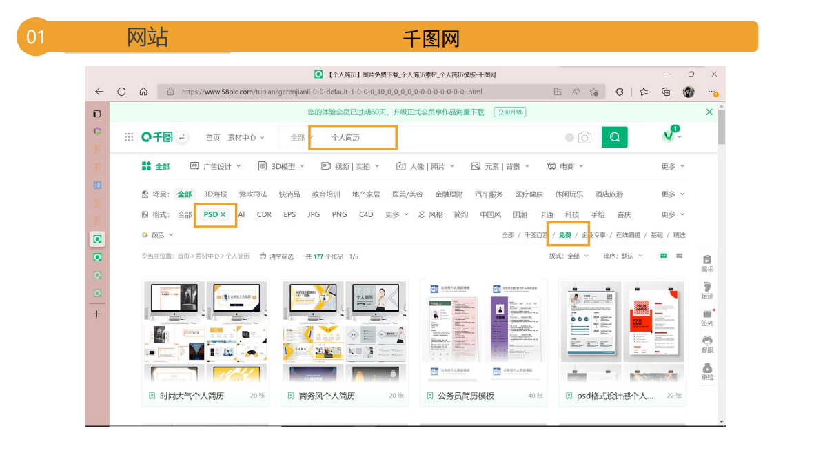 模板的下载可以在千图网、简历下载网、办公资源网、YY简历网等网站挑选适合的简历模板进行下载。