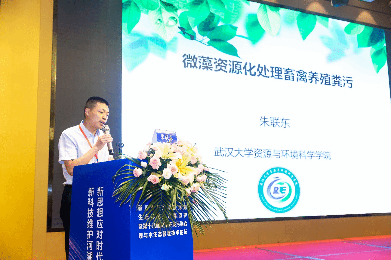 朱联东教授受邀参加本次大会并作题为“微藻资源化处理畜禽养殖污染”的主旨报告,系统地介绍了微藻技术在畜禽养殖粪污处理过程中的理论研究成果和应用实践,为河湖环境保护和农业可持续发展分享了“绿色智慧”。