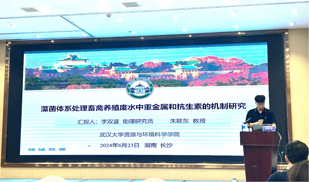 朱联东教授团队博士后李双喜和博士生吴其睿分别在专题论坛中作了“藻菌体系处理畜禽养殖废水中重金属和抗生素的机制研究”和“微藻真菌体系强化畜禽养殖废水处理的效果及机制研究”的学术报告,对团队近期的研究结果进行了分享和汇报。