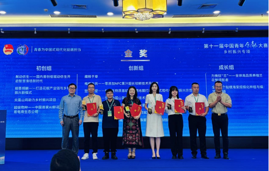 本届大赛以“青春为中国式现代化挺膺担当”为主题,由共青团中央、商务部、国家卫生健康委、国家税务总局和天津、福建、江西、湖北省(市)人民政府共同主办,设置科技创新、乡村振兴、数字经济、社会企业4个专项赛事和综合交流活动,为创业青年提供技能培训、展示交流、咨询辅导、资本对接等服务,截至目前,已吸引超过1.6万支青年创业团队、近5.8万名创业青年参与。其中《塑造硒望--创新生物质基矿化富硒地膜打造中国式现代化乡村振兴示范样本》项目位列乡村振兴专项创新组全国第三。