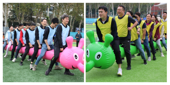 随着比赛的进行,现场的气氛愈发热烈。在“资环毛毛虫”项目中,教职工们化身为一条条色彩斑斓的毛毛虫,他们步伐一致,齐心协力地向前挺进,每一步都考验着团队的协调性。观众们的笑声和加油声此起彼伏,为参赛者们注入了无尽的动力。