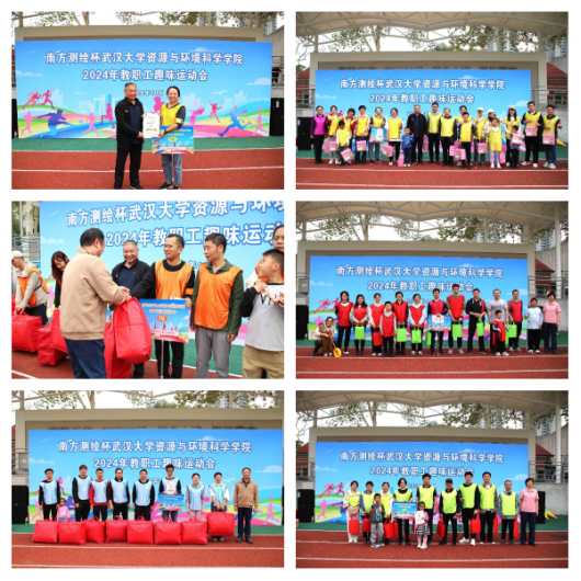 经过激烈的角逐,趣味运动会在欢声笑语中结束了各项比赛,也同时产生了本次运动会的一、二、三等奖。颁奖仪式上,资环学院刘兴国书记、魏秀琴副院长和中国战略发展研究院王颂副院长分别为获奖团体颁奖。各团队全体教职工依次领奖、合影,大家的脸上都洋溢着开心的笑容。