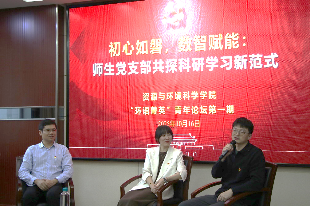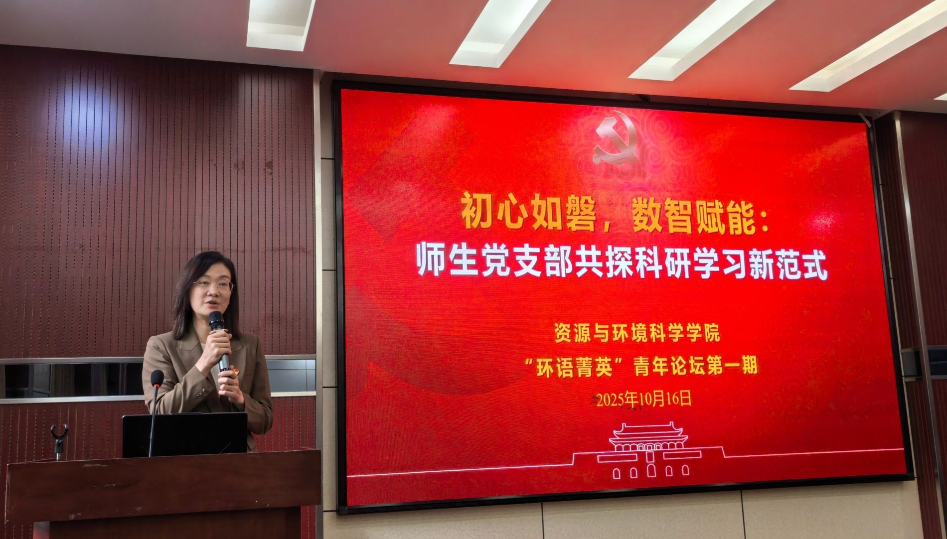 第一期“环语菁英”青年论坛在学院220报告厅顺利举行。本次论坛以“初心如磐,数智赋能:师生党支部共探科研学习新范式”为主题。学院党委书记张宇宁、党委副书记王泉、马丽华出席论坛,地理信息与地图科学系教师党支部、研究生第四党支部及地理科学与国土资源系研究生第五党支部、本科生第一党支部的党员和积极分子代表共60余人参加本次论坛。论坛由地理信息与地图科学系教师党支部书记杨敏主持。