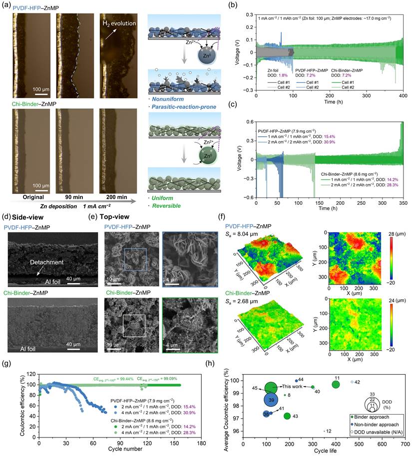 图4. 使用Chi-Binder制备的ZnMP电极的表征
