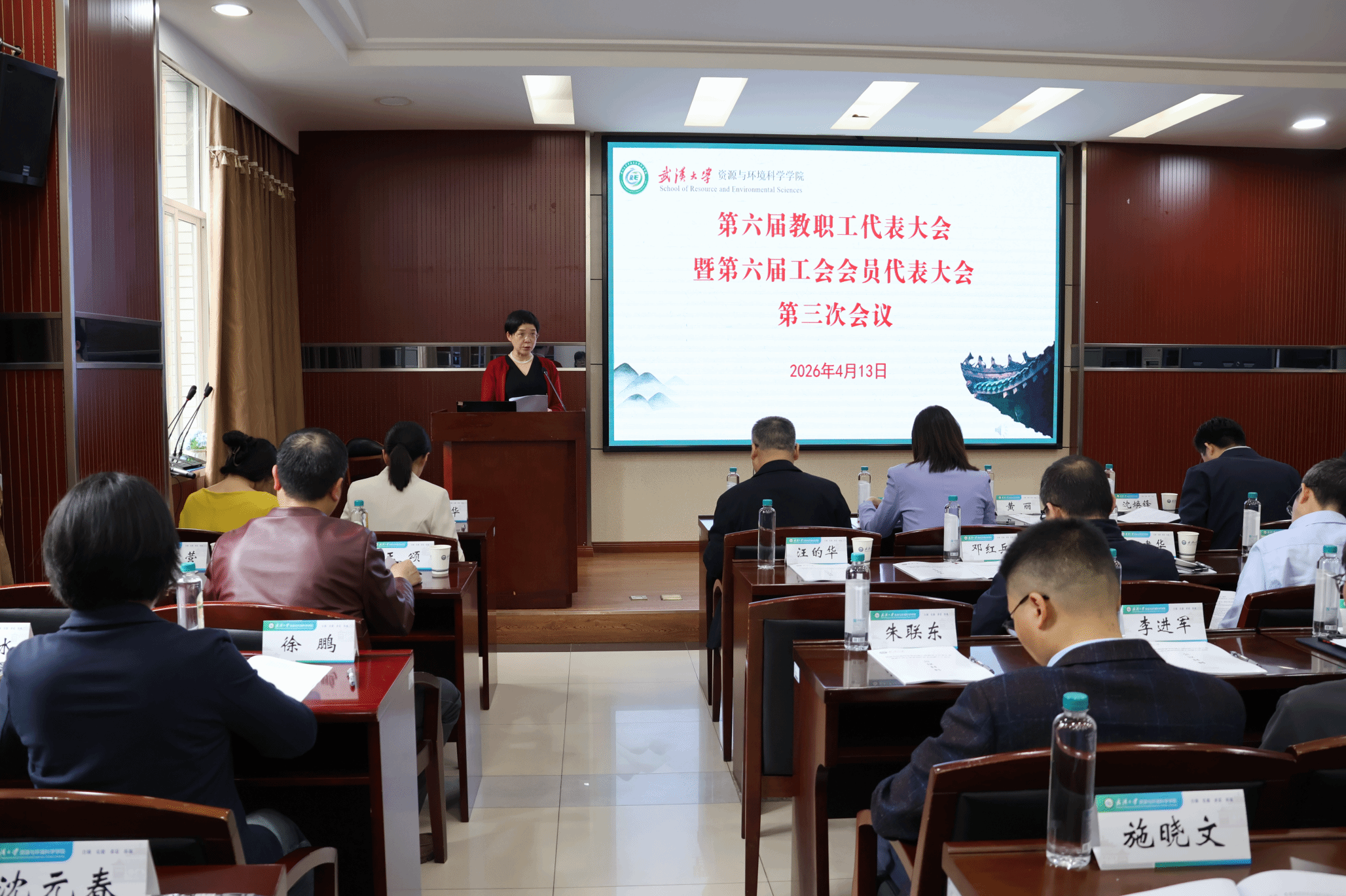 大会在庄严的国歌声中开幕。首先,校工会副主席黄丽致辞。她充分肯定了资环学院在2025年各项工作中取得的显著成绩,特别是对于学院“邓红兵劳模工作室”获评“湖北省劳模工匠创新工作室”,以及学院近几年来扎实推进工会工作给予了高度评价。她指出,院工会要在学院党委的领导下,继续履行好工会职能,切实做好教代会和工会的各项工作,团结动员全体教职工为实现学院高质量发展做出新的更大贡献。