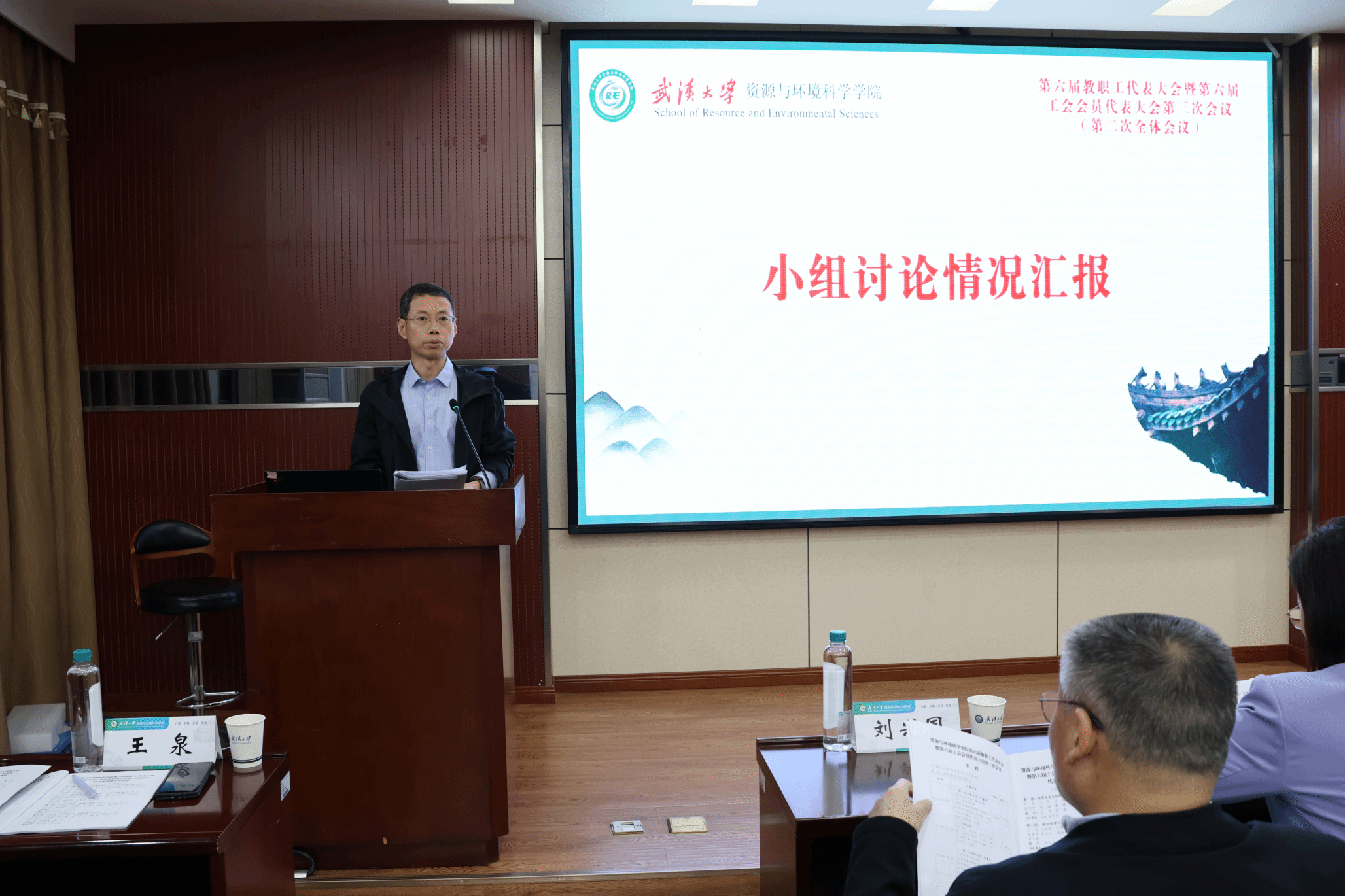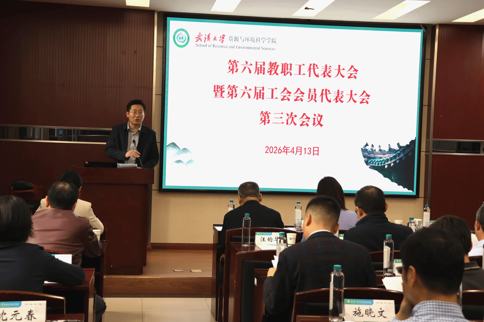 大会上,院长沈焕锋代表学院作年度工作报告。沈院长表示,学院始终坚持立德树人的根本任务,在全院教职工的共同努力下,2025年在学科建设、人才培养、队伍建设、科研创新、国际合作、管理服务等领域都取得了显著成绩。沈院长分析了学院在高质量发展中存在的问题,提出了2026年学院发展的十大工作思路。之后,沈院长反馈了学院六届二次“两代会”中代表们提出建议的落实情况,并对学院财务工作报告做了解读。