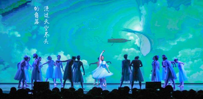 根据抽签结果,资环学院第一个出场。舞台上一片静谧,随着一段空灵的女声念白响起,舞蹈队员们已然进入状态。她们动作翩跹柔美,舞步灵动轻盈,在舞蹈中投入了真切的感情,将每一句歌词的情感展示得淋漓尽致。