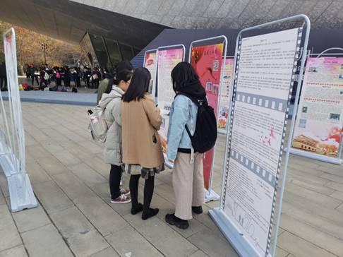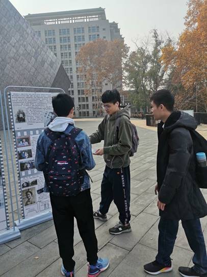 上午十点,支部同学们在信操门口集合后,在团支书的带领下一同前往万林博物馆。家国七十年的展览场地在万林博物馆门前,展览分为个人组和团队组,形色各异的展板上讲述着一件又一件充满历史感的故事。同学们首先在展览入口处领取了投票表,而后大家都分散在各个展板前,或驻足欣赏,或聚在一起低声讨论,每个人都被展板上充满深情的文字深深吸引,久久不忍离去。