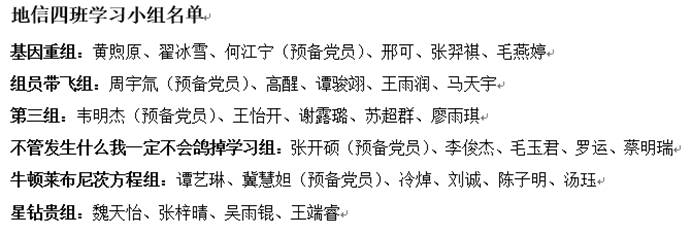 班级内部还组建了6个学习小组,每个小组由4-6名同学组成,大家经常开展线上线下的学习互助活动,形成了团结奋进的学习氛围。我们全班有一半以上的同学参加了各类科研项目,在科研团队中成长、进步。全班无一人挂科,学习成绩平均分都在80分以上,获得“老王论坛