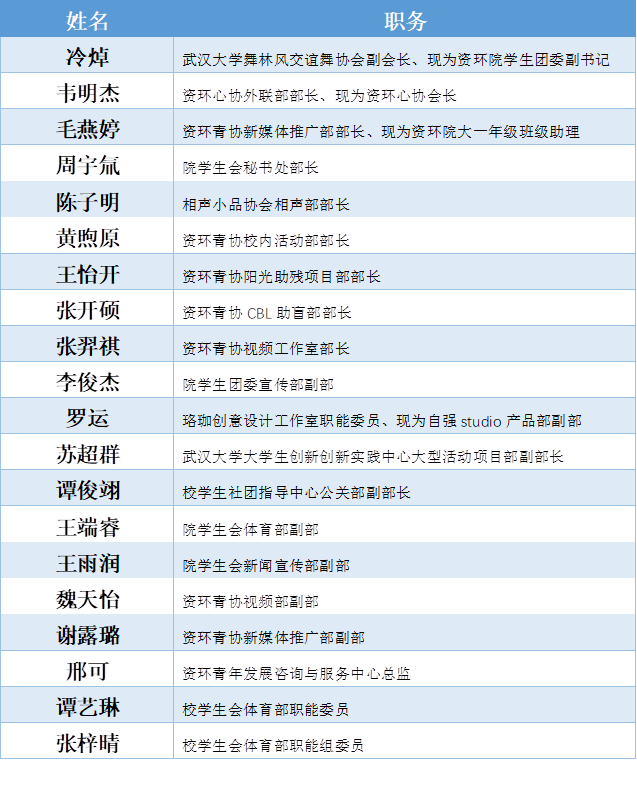 在班级事务之外,我们班还有20位同学成为校院各大社团组织的骨干成员,在社团中散发着自己的光芒。