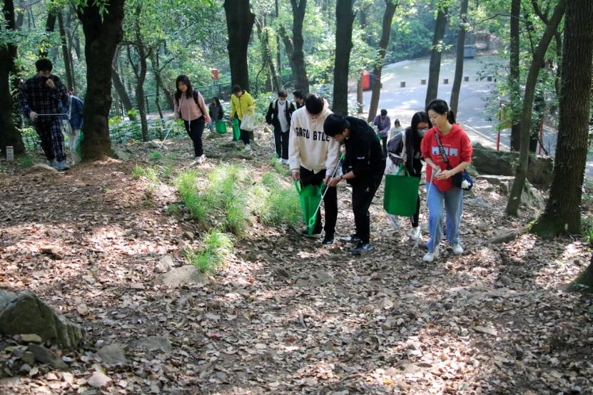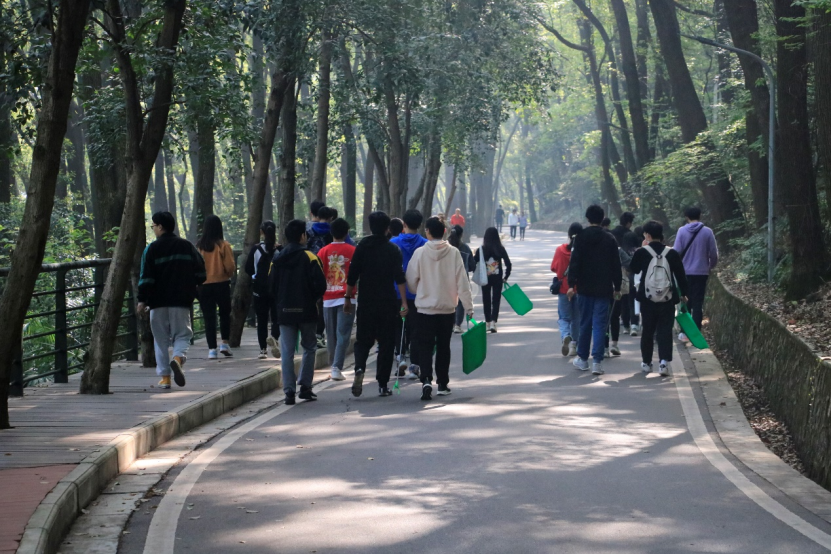 珞珈山地处东湖之滨,山光水色,交相辉映,从山腰至山顶,林深茂密,摇苍飞翠,山顶的大坑与奇石更是别具一番风味,因而一年四季都是学生、老师、游客们外出游玩、野餐、拍照打卡的圣地。熙熙攘攘的人群为珞珈山带去了生气,也带去了许多细碎的垃圾。作为珞珈山的主人,每一名学子都有义务维护珞珈山环境的整洁,共同建设和创造美好的校园环境。