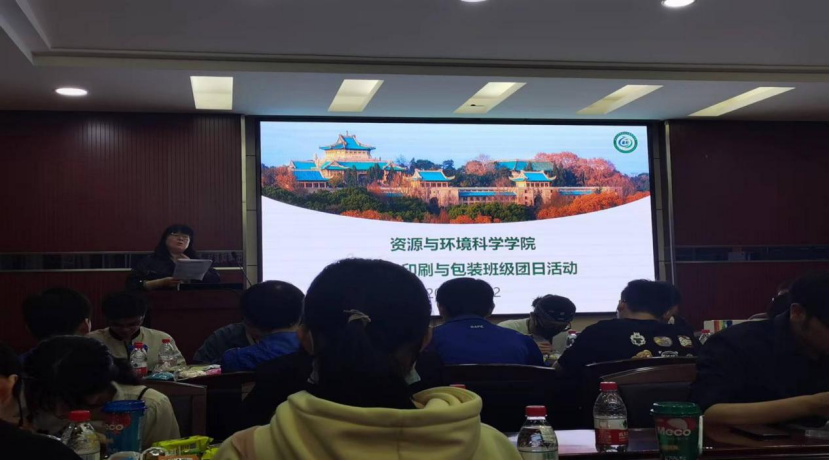 活动开始冯丹书记上台讲话,冯书记和同学们介绍了学院目前对于印包班级的有关安排,以及一些同学们比较关心的方面,比如奖学金评比措施、保研政策等。同时冯书记也表示很关心大家的生活学习,并说明学院有心理咨询座谈,如果同学们有什么问题或需要也可以直接跟她沟通联系。