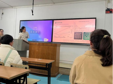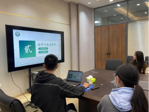 班会第二项,了解当下的经济与就业形势。在国家发展委举行的新闻发布会上,新闻发言人以十二个字:总量增、质量升、韧性强、发展好,概括我国的经济发展态势。在此经济发展态势下,王馨茹同学提出了一系列就业建议供同学们参考学习。