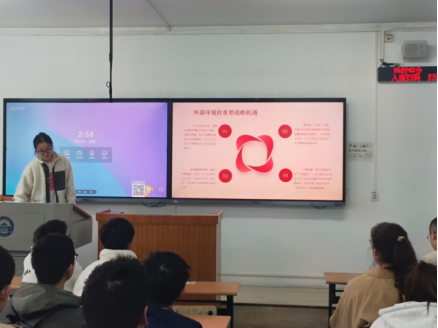 首先,主讲人陈悦同学就疫情形势出发,向同学们讲述了当今新时代的大环境形式与新时代发展机遇。