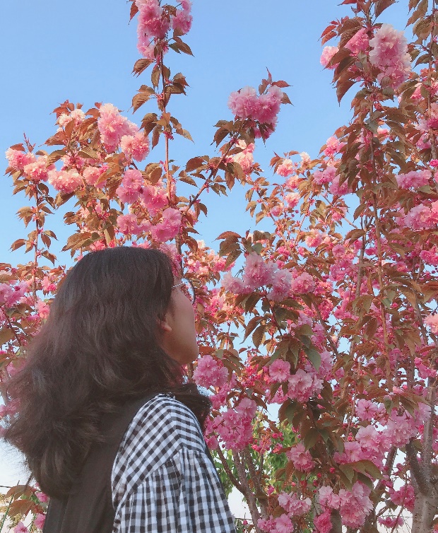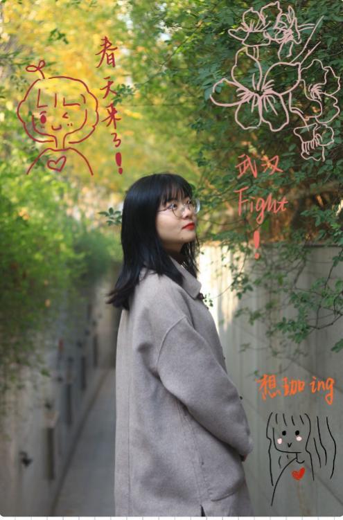 同学们寻找相册里含有各自学校春日元素的照片进行拼接,约定拍照姿势,以PS的形式将其同代表各自学校的春日元素的照片(如樱花照片、海棠照片等)进行拼接制作。也有同学在图片上进行二次涂鸦创作,期盼早日“摘下”口罩,早日回到校园,拥抱春天,履行我们与春天的“约定“。
