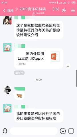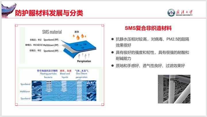 对新型冠状病毒的防控材料主要有两类,包括病毒防护隔离材料和病毒灭活材料。在病毒防护隔离材料方面。有同学向大家介绍了现有的医用防护口罩和防护服的材料,有同学介绍了各种新型的防护材料的优势。