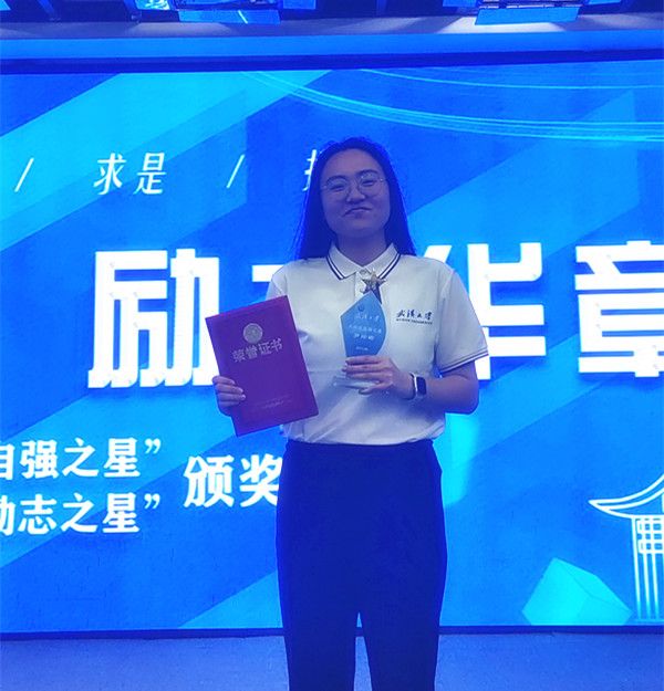 她热衷于创新创业,作为团队的创始成员和核心成员,曾获互联网+全国总决赛金奖,挑战杯全国总决赛铜奖、深创赛武汉高校预选赛特等奖等。她积极投身于学生工作和志愿服务,“冀以尘雾之微补益山海,萤烛末光增辉日月”,4年的学生工作,超100小时的服务时长,让她在每一个付出的瞬间收获快乐。