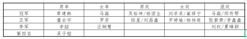 最终,经过复赛的激烈竞争角逐,得到了本次羽毛球赛最终的比赛结果。