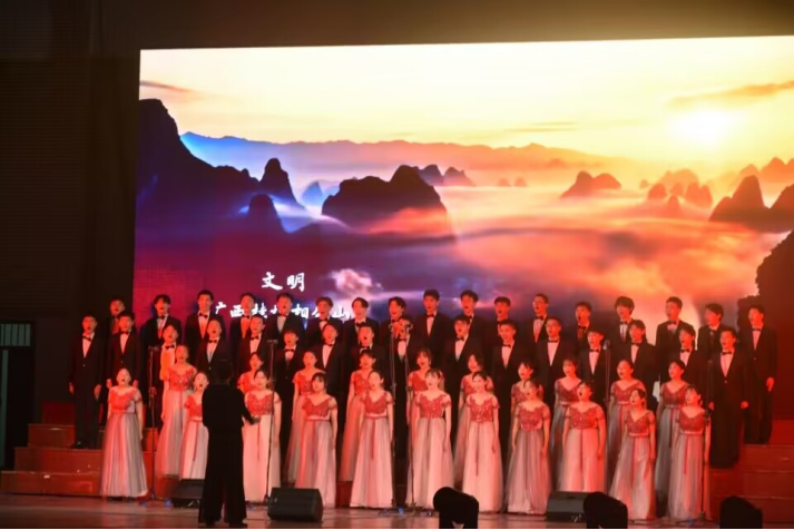 灯光作五彩,呈霓虹,带着点点朦胧,与合唱团的和声共振。一句简单的“我爱你中国”反复被吟唱,每一遍都带着不同的韵律与情感,就像每一个人爱国的方式都不一样。旋律虽异,不变的是那颗赤诚的心。清澈的爱,只为中国,爱国,从祖国的每一株秧苗到每一颗硕果,从青松的气质,到红梅的品格……一曲《我爱你中国》爱国情绵长,但收束干脆利落,让人回味无穷。