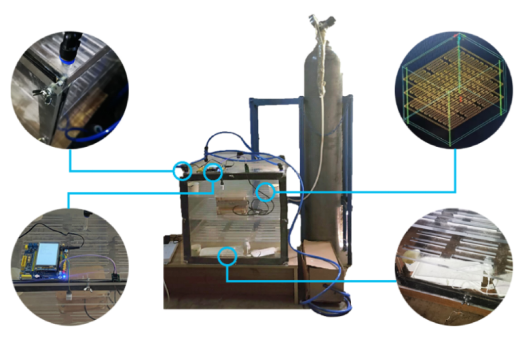 装置基于二氧化碳矿化养护技术设计养护箱,同时耦合多传感器协同的智能控制系统。养护箱根据传感器的反馈进行实时响应,实现对养护过程的自动化处理。混凝土制作使用粉煤灰、铅锌尾矿代替部分水泥,利用尾气中的二氧化碳进行矿化养护,实现固废和气废利用流程耦合,从而达到节能减排的目的。