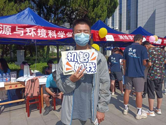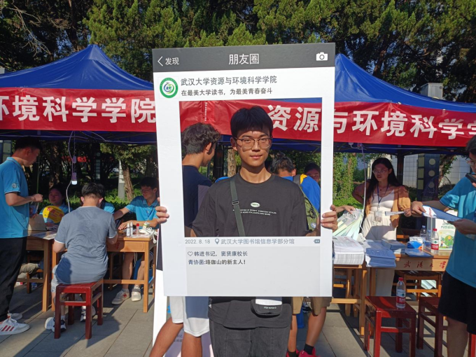 在迎新现场,许多同学还纷纷留下了在武大的第一张照片。明媚的阳光下,新同学们手举立牌,露出笑脸,镜头定格下了这一个个美好的瞬间: