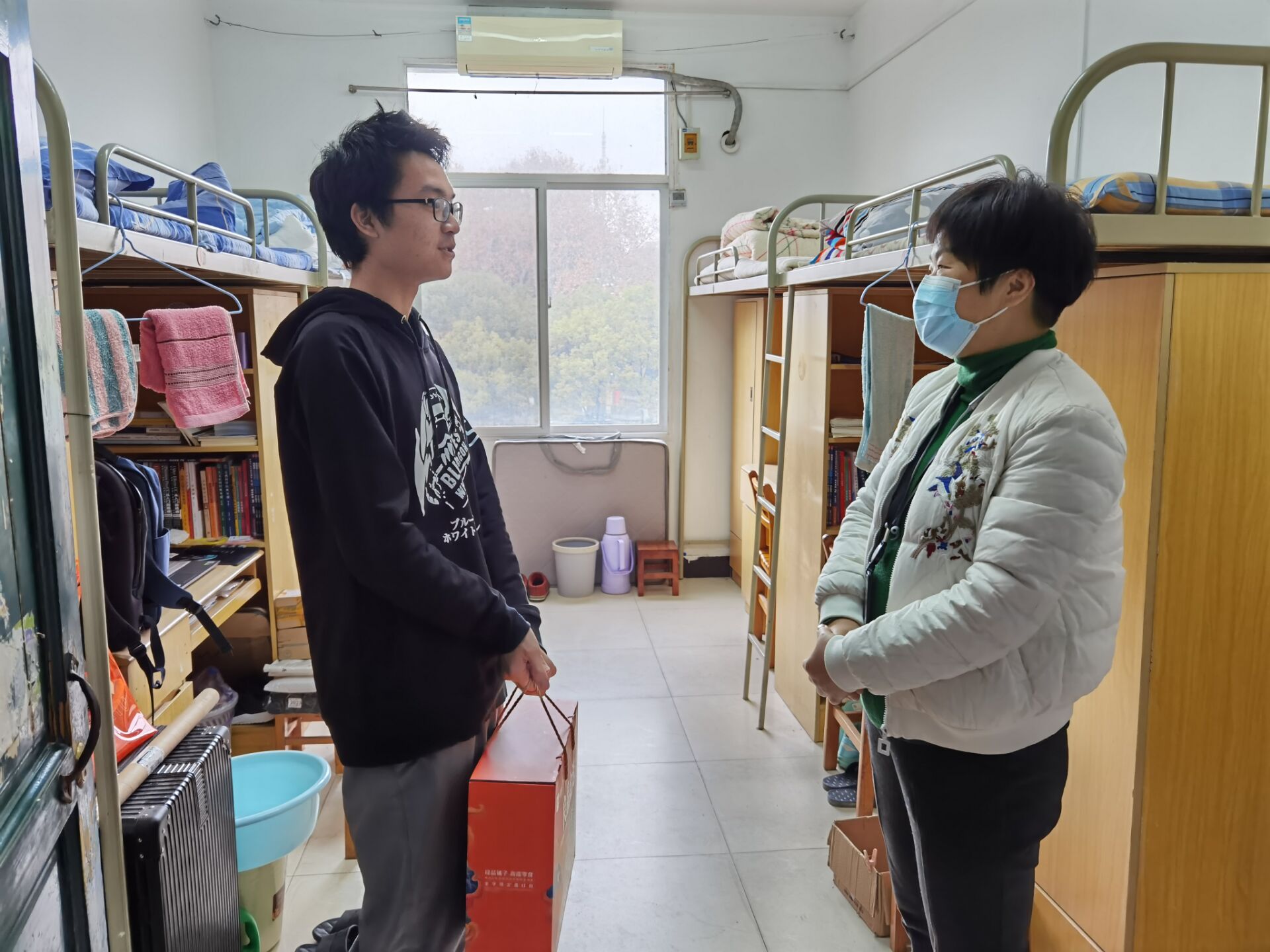老王论坛 目前共有8名本科生因疫情或自主学习等原因申请留校。老师们与每位留校学生亲切交流,关心问候同学们在校情况,询问同学们生活上是否存在困难。其中有两位同学因西安和安阳疫情而不能返乡,冯书记详细了解了他们的家里情况,并请同学们向其家人转达学院的诚挚问候。老师们为每位留校同学送去慰问品,叮嘱大家一定要保重身体、注意安全、劳逸结合、保持联系。