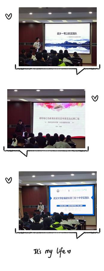 赴福建双十中学实践队为武大在自己的母校——双十中学做出了自己的贡献。为顺利开展并进一步加强学校本科招生宣传工作,扩大学校在全国的影响力和吸引力,密切与各地中学的联系,充分展现我校学子风采,吸引更多的优秀生源报考,他们组队回母校进行招生宣传,搭建高中与学校、招生组的沟通渠道。同时,他们也在在回访中锻炼了自我、提升了自我。
