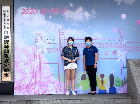(2018级测绘工程硕士毕业生周泊远与毕业视频合影)