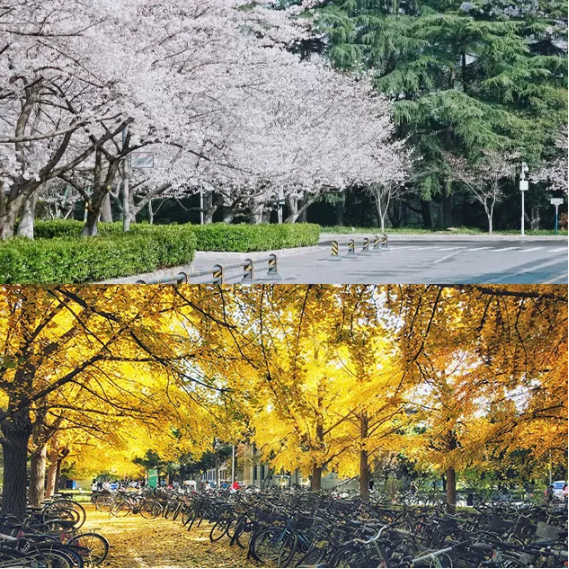 拥有全国高校最大的绿化广场,校园内以樱花最为闻名,有樱花城堡、樱花大道、樱顶、珞珈广场等相关景点,并且动植物种类丰富、数量庞大,有大量小灌木、野生花卉、药用植物和岩生植物,如盘龙参、紫芝、海金沙、金鸡菌、挖耳草、江南毛莨等,珞珈山被誉为全国树木园,武大校园也成为中国植物学会植物园分会。[1]