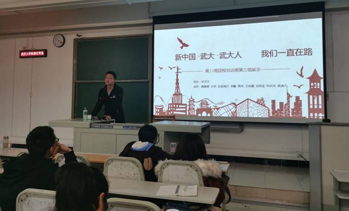 “假如有一个时间老人带你回武大,见证这七十年来武大与祖国的故事……”第三小组的展示以人物小故事的方式展开,带同学们走进了武大这七十年来的风风雨雨,谱写了武大与新中国一起成长七十年的精彩篇章。武大与建国、武大在国家困难时期、武大与恢复高考、武大与改革开放和武大与当今时代……他们用叶雅各、钟心煊、孙祥钟、查全性、刘道玉等名人的故事向我们诉说了武大情缘,国家情怀。