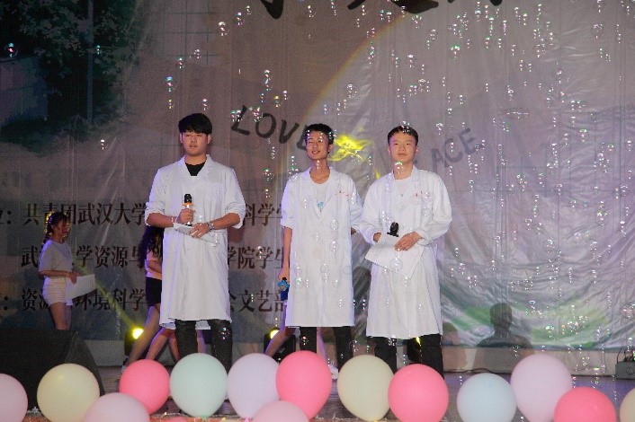 2015级环境科学系本科生带来了舞台剧《换壳比耶概论》。四年来,大家一起爬过汉阳峰,取过星湖水,手写过数十页的实验报告,曾经为生态学发愁,为小球藻苦恼,这些都是专业学习中经历的险阻,如今却化作了舞台上的一个个引人共鸣的笑点,让人回想起这难忘的四年大学生活。