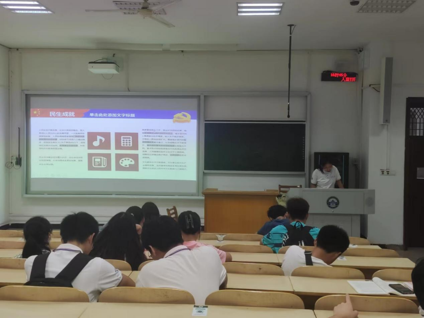 2021级环境工程团支部团支书郭晓萌带领大家进行理论学习。简单的开场白过后,郭晓萌带大家分别从经济建设、民生建设、生态文明建设等角度详细回顾了共产党带领中国人民所创下的伟大成就,增强了班集体的凝聚力,激发了青年团员的创新意识和创造活力。