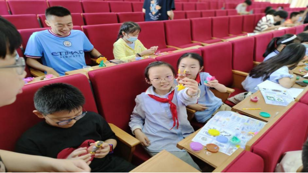 第二部分,我们负责指导附小同学做黏土模型。这个部分附小的同学们发挥天马行空的想象力,和超强的动手能力,我们指导他们如何加强粘土模型的结构,使它更加美观和稳定。小学生们也非常认真地学习,他们互相帮助、互相鼓励,创作出了许多优美的作品。有小刺猬,梦可宝,跳跳虎等。从他们开心的笑容中可以了解到他们的参与感满满。在制作的同时我们也向他们讲述一些环境方面的知识,例如,21级卢宗耀同学给他带的几位小朋友讲解“什么是温室效应,导致温室效应的原因,以及温室效应的危害……”在听完讲解后,他们纷纷表示以后一定要做一个环保小达人,绿色出行,为减少温室效应贡献自己的力量。在同学们的笑声中黏土制作阶段接近了尾声,最后我们和可爱的小朋友们拍合照留念。